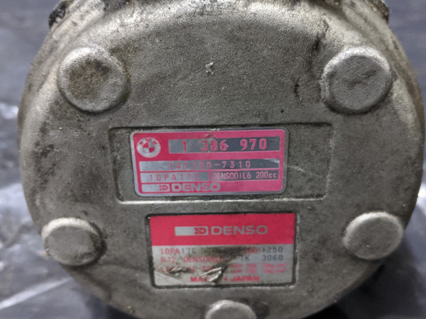 BMW E30 3-Series Air Conditioning A/C Compressor Pump 64521386970. R12. Shows wear from use such as scratches and scuffs. Some corrosion on the item. Use part number to determine fitment. Working when removed. Removed from parts vehicle. Please see photos for more detail. Free shipping to the lower 48.