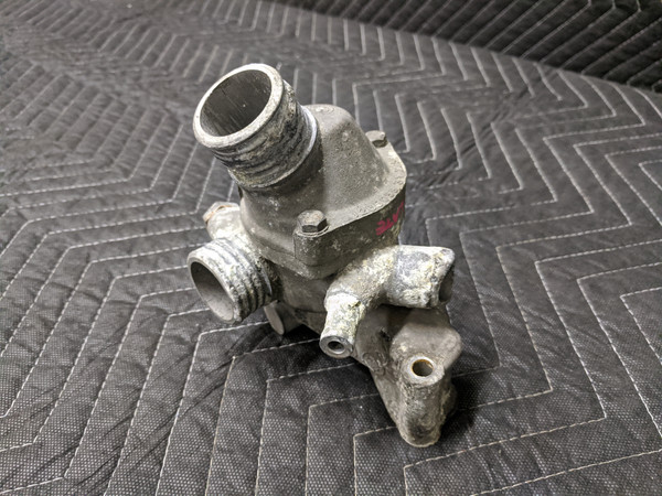 BMW E30 3-Series M20 Engine Coolant Thermostat Housing 1265055. Shows wear from use such as scratches and scuffs. Some corrosion on the item. Use part number to determine fitment. Working when removed. Removed from parts vehicle. Please see photos for more detail. Free shipping to the lower 48.