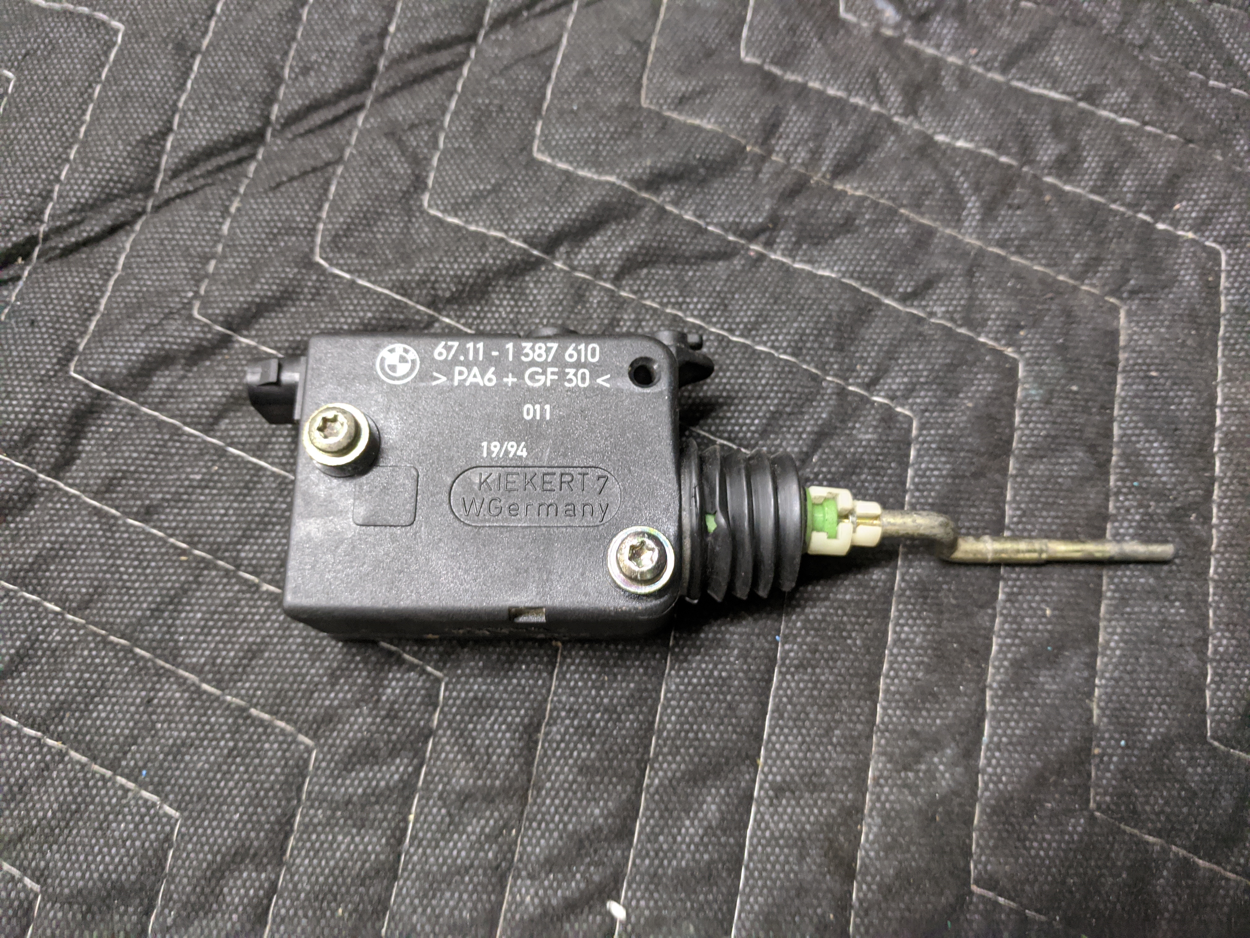 BMW E36 3-Series Fuel Door Lock Actuator 67111387610. Shows wear from use such as scratches and scuffs. Use part number to determine fitment. Working when removed. Removed from parts vehicle. Please see photos for more detail. Free shipping to the lower 48.