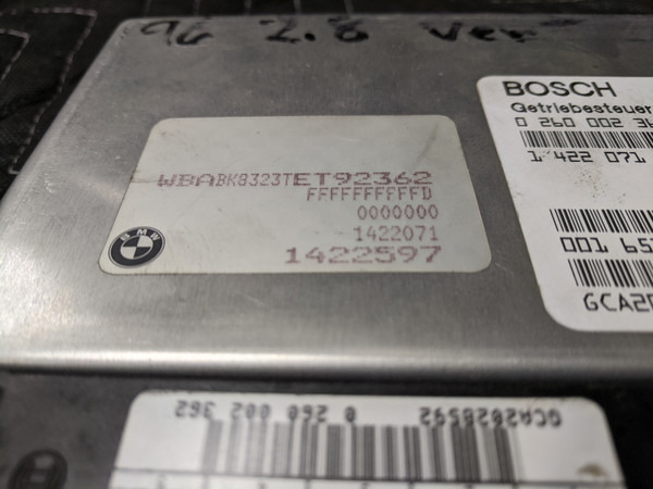 BMW E36 328ic TCM EGS Transmission Control Module Bosch 24601422597. GS 8.34. Removed from a 1996 328ic. Shows wear from use such as scratches and scuffs. Use part number to determine fitment. Working when removed. Removed from parts vehicle. Please see photos for more detail. Free shipping to the lower 48.