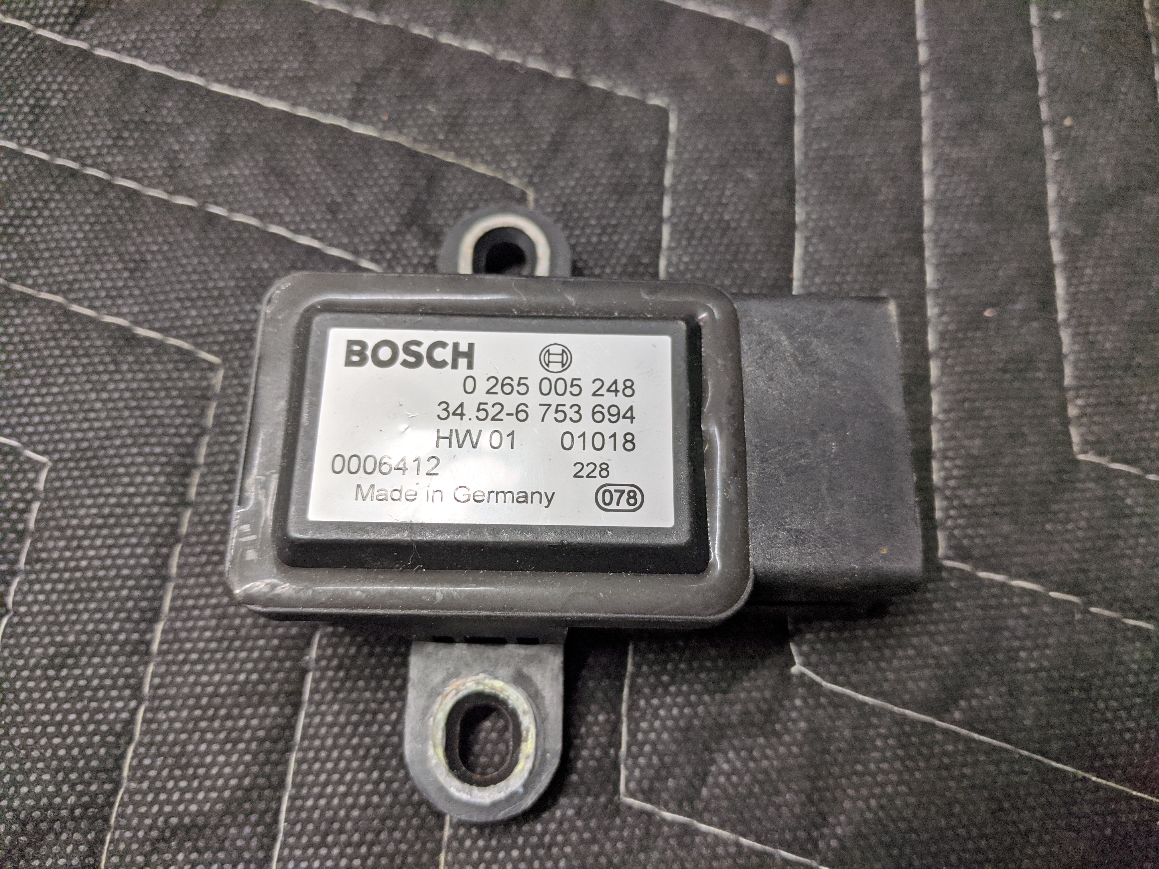 BMW E38/E39/E46/E52/E53 Yaw Acceleration Speed Sensor Bosch 34526753694. Bosch part number 0265005248. Item shows wear from use such as scratches and scuffs. Part may not fit all variations of chassis listed. Use part number to determine fitment. Working when removed. Removed from parts vehicle. Please see photos for more detail. Photos are stock photos and representative of the condition of the item. The item you receive may have variations in appearance compared to the photos shown. If you would like to see the specific item you will receive, please contact us prior to purchase. Free shipping to the lower 48 United States. Returned items are subject to a 20% restocking fee for any non-defective items.
