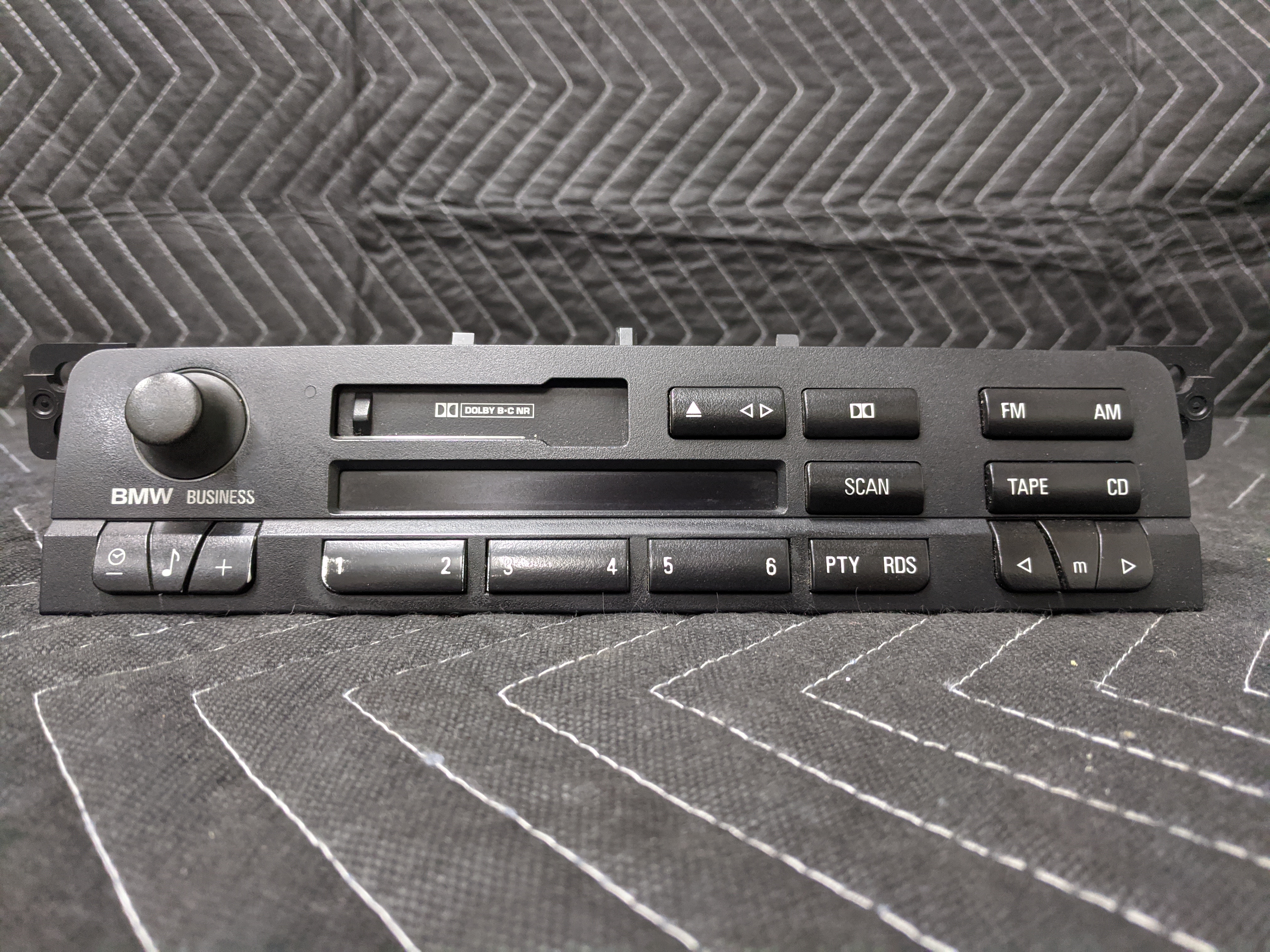 BMW E46 3-Series Business AM FM Radio Tape Player Alpine 65126902716. Shows wear from use such as scratches and scuffs. The graphics show some fading from use and the buttons are worn. Use part number to determine fitment. Working when removed. Removed from parts vehicle. Please see photos for more detail. Free shipping to the lower 48.