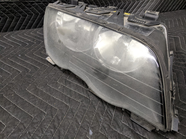 BMW E46 3-Series Halogen Headlight Right Passenger Black 63126902754. Shows wear from use such as scratches and scuffs. The headlight lens is cloudy. Use part number to determine fitment. Working when removed. Removed from parts vehicle. Please see photos for more detail. Free shipping to the lower 48. Returned items are subject to a 20% restocking fee for any non-defective items.