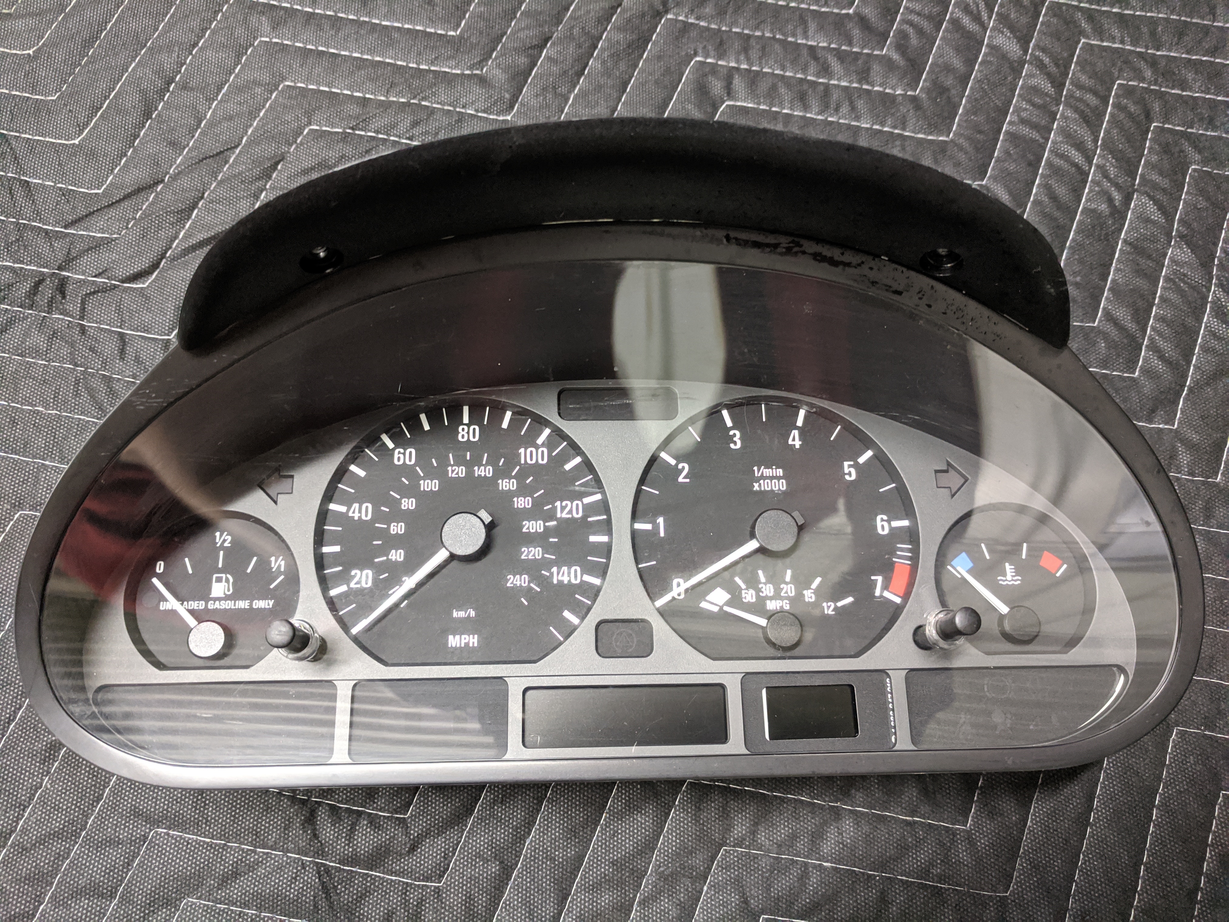 BMW E46 3-Series Instrument Cluster Speedometer Odometer 62106940877. Read 127,181 miles when removed. Displays MPH. Shows wear from use such as scratches and scuffs. Use part number to determine fitment. Working when removed. Removed from parts vehicle. Please see photos for more detail. Free shipping to the lower 48.