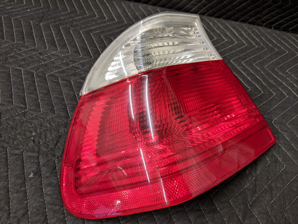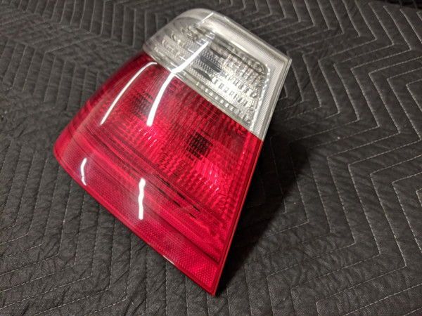 BMW E46 3-Series Passenger Right Tail Light Red/White 63218383822. Euro clear. The foam gasket is loose. Shows wear from use such as scratches and scuffs. Use part number to determine fitment. Working when removed. Removed from parts vehicle. Please see photos for more detail. Free shipping to the lower 48 United States. Returned items are subject to a 20% restocking fee for any non-defective items.