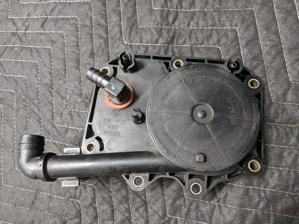 BMW E52/E53 Z8 X5 PCV Crankcase Oil Separator Valve Cover 11617508541. Shows wear from use such as scratches and scuffs. Use part number to determine fitment. Working when removed. Removed from parts vehicle. Please see photos for more detail. Free shipping to the lower 48.