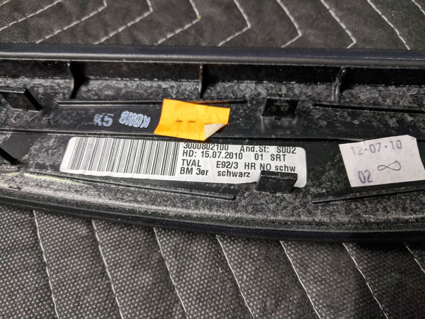 BMW E92/E93 M3 Armrest Upper Section Rear Right Novillo Black Leather 51437903620. Please use part number to determine fitment. Free shipping to the lower 48.