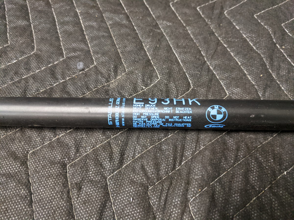 BMW E93 3-Series M3 Trunk Lid Strut 51247129215. 230N. Shows wear from use such as scratches and scuffs. Use part number to determine fitment. Working when removed. Removed from parts vehicle. Please see photos for more detail. Free shipping to the lower 48.