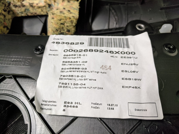 BMW E93 M3 Convertible Lateral Trim Panel Novillo Black Leather Rear Left 51437891111. Some wear on the leather. Please see photos for more detail. Please use part number to determine fitment. Free shipping to the lower 48.