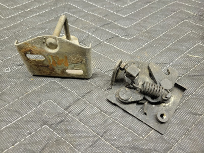 BMW E21 3-Series Trunk Lid Catch Assembly 51241867719. The set includes the upper and lower catch with hardware. There is some black paint on the components. Item shows wear from use such as scratches and scuffs. Part may not fit all variations of chassis listed. Use part number to determine fitment. Working when removed. Removed from parts vehicle. Please see photos for more detail. Free shipping to the lower 48 United States. Returned items are subject to a 20% restocking fee for any non-defective items.