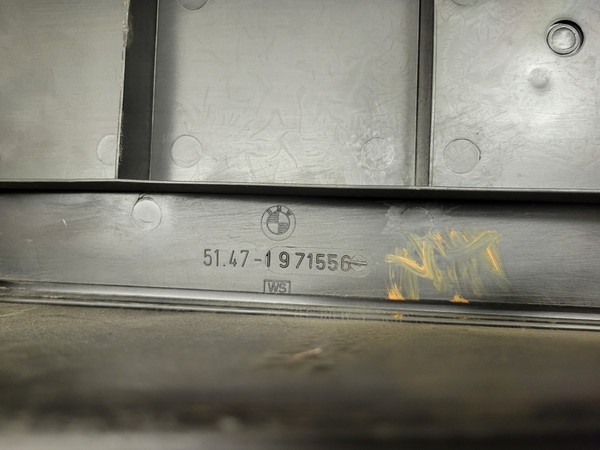 BMW E30 3-Series Battery Trunk Trim Cover 51471971556. Item shows wear from use such as scratches and scuffs. Part may not fit all variations of chassis listed. Use part number to determine fitment. Working when removed. Removed from parts vehicle. Please see photos for more detail. Free shipping to the lower 48 United States. Returned items are subject to a 20% restocking fee for any non-defective items.