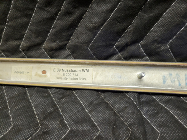 BMW E39 5-Series Rear Left Door Wood Trim Strip Nussbaum 51428200713. There are no cracks in this trim piece. Item shows wear from use such as scratches and scuffs. Part may not fit all variations of chassis listed. Use part number to determine fitment. Working when removed. Removed from parts vehicle. Please see photos for more detail. Free shipping to the lower 48 United States. Returned items are subject to a 20% restocking fee for any non-defective items.