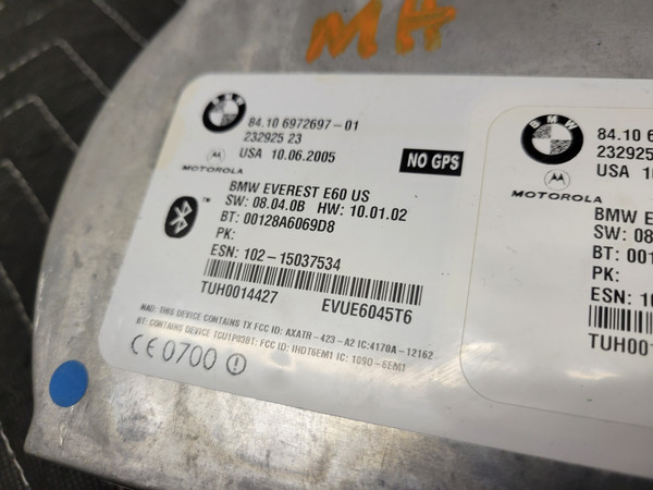 BMW E60 5-Series Telematic Bluetooth Module 84106972697. Item shows wear from use such as scratches and scuffs. Part may not fit all variations of chassis listed. Use part number to determine fitment. Working when removed. Removed from parts vehicle. Please see photos for more detail. Free shipping to the lower 48 United States. Returned items are subject to a 20% restocking fee for any non-defective items.