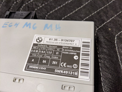 BMW E60/E61/E63/E64 6-Series Passive Go Control Unit 61359112867. Shows wear from use such as light scratches and scuffs. Use part number to determine fitment. Working when removed. Removed from parts vehicle. Please see photos for more detail. Free shipping to the lower 48 United States. Returned items are subject to a 20% restocking fee for any non-defective items.