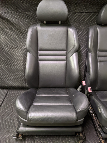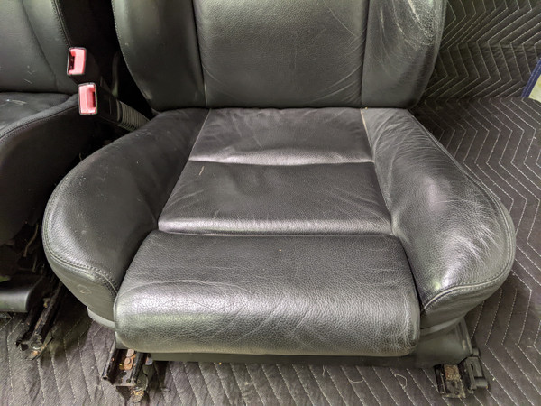 BMW E60 M5 Front Sport Seats Leather Heated Schwarz 52107898523. Merino LKSW=yes. The seat control trim was removed for the photos but is included. Item shows wear from use such as scratches and scuffs. Part may not fit all variations of chassis listed. Use part number to determine fitment. Working when removed. Removed from parts vehicle. Please see photos for more detail. Returned items are subject to a 20% restocking fee for any non-defective items.