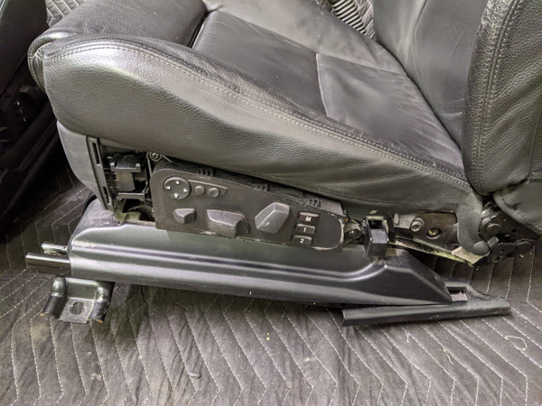BMW E60 M5 Front Sport Seats Leather Heated Schwarz 52107898523. Merino LKSW=yes. The seat control trim was removed for the photos but is included. Item shows wear from use such as scratches and scuffs. Part may not fit all variations of chassis listed. Use part number to determine fitment. Working when removed. Removed from parts vehicle. Please see photos for more detail. Returned items are subject to a 20% restocking fee for any non-defective items.