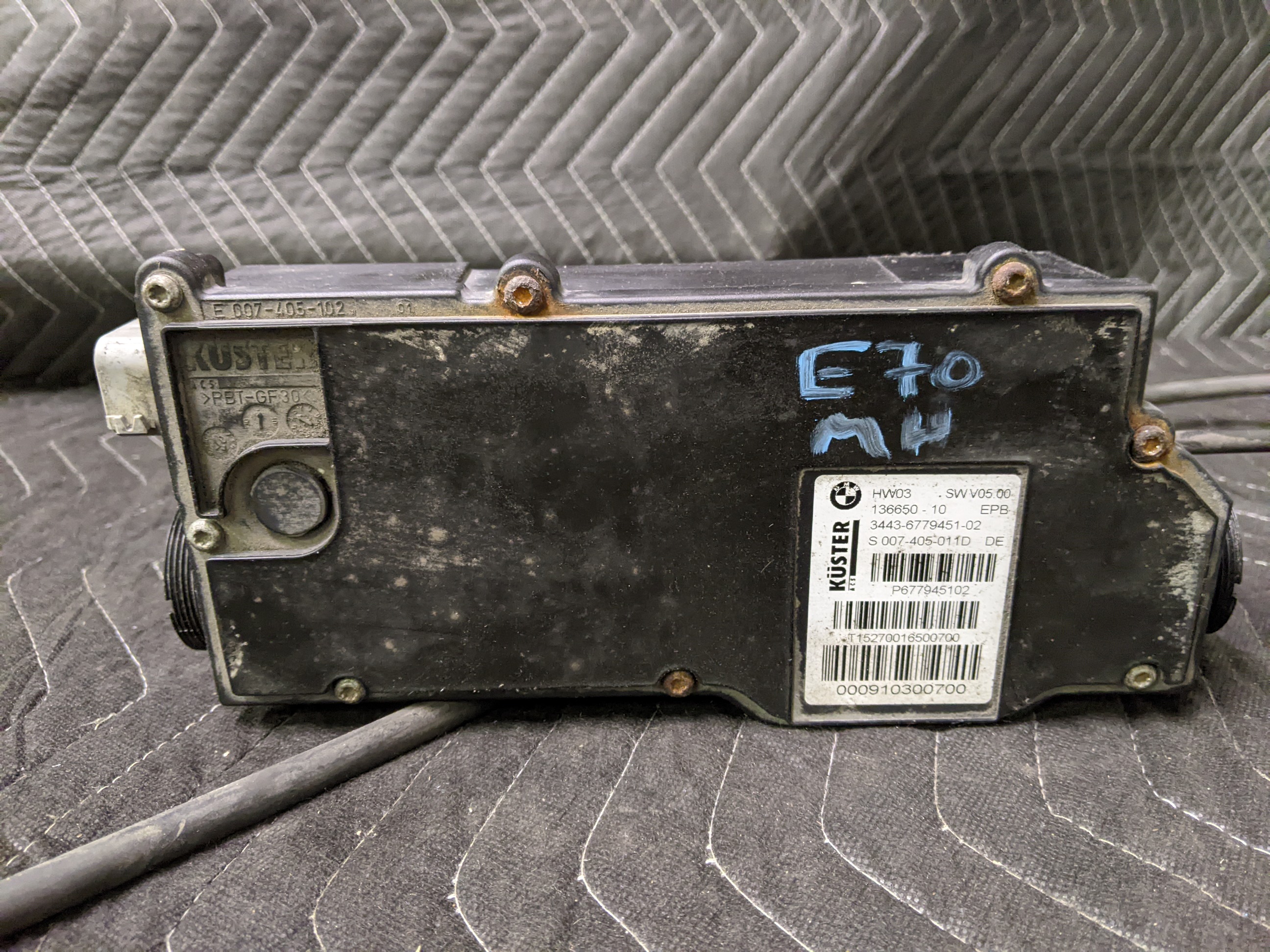 BMW E70/E71/E72 X5 X6 Parking Brake Actuator 34436779451. The cables were removed and will need to be replaced. Item shows wear from use such as scratches and scuffs. Part may not fit all variations of chassis listed. Use part number to determine fitment. Working when removed. Removed from parts vehicle. Please see photos for more detail. Free shipping to the lower 48 United States. Returned items are subject to a 20% restocking fee for any non-defective items.