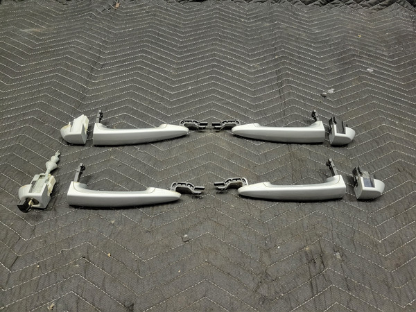 BMW E90 3-Series Exterior Door Handle Set With Key 51217207561. Includes handles and caps for all four door and one key. The color is titanium silver-354. For vehicles without comfort access and with light package s563a. Item shows wear from use such as scratches and scuffs. Part may not fit all variations of chassis listed. Use part number to determine fitment. Working when removed. Removed from parts vehicle. Please see photos for more detail. Free shipping to the lower 48 United States. Returned items are subject to a 20% restocking fee for any non-defective items.