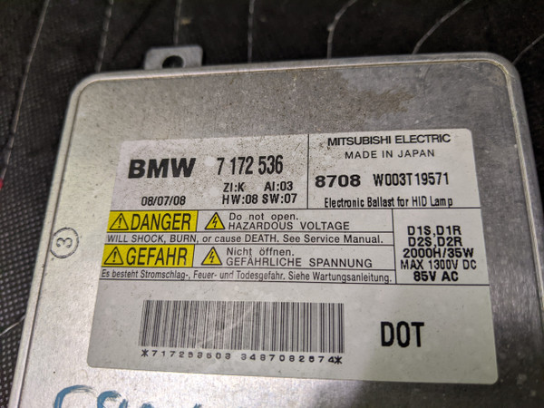 BMW E90 3-Series Xenon Headlight Control Ballast 63127172536. Removed from a ZKW LCI Adaptive Xenon Headlight. Item shows wear from use such as scratches and scuffs. Some corrosion on the item. Part may not fit all variations of chassis listed. Use part number to determine fitment. Working when removed. Removed from parts vehicle. Please see photos for more detail. Photos are stock photos and representative of the condition of the item. The item you receive may have variations in appearance compared to the photos shown. If you would like to see the specific item you will receive, please contact us prior to purchase. Free shipping to the lower 48 United States. Returned items are subject to a 20% restocking fee for any non-defective items.