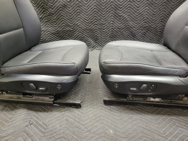 BMW E90/E91 3-Series Heated Leather Front Seats Dakota Schwarz 52106985936. Power with lumbar adjustment. The drivers seat side bolster shows some wear and the lumbar ajsutment switch button is loose. Items show wear from use such as scratches and scuffs. Parts may not fit all variations of chassis listed. Use part number to determine fitment. Working when removed. Removed from parts vehicle. Please see photos for more detail. Returned items are subject to a 20% restocking fee for any non-defective items.