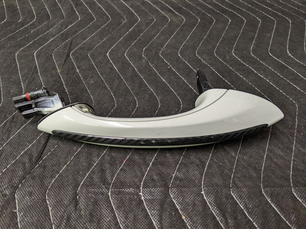 BMW F01/F02/F03/F04/F06/F07/F10/F11/F12/F13 Exterior Door Grab Handle Right 51217231934. Color is Alpinweiss 3. For vehicles with comfort access and ambient lighting. There is a vinyl carbon fiber look wrap on the center trim strip. Item shows wear from use such as scratches and scuffs. Part may not fit all variations of chassis listed. Use part number to determine fitment. Working when removed. Removed from parts vehicle. Please see photos for more detail. Photos are stock photos and representative of the condition of the item. The item you receive may have variations in appearance compared to the photos shown. If you would like to see the specific item you will receive, please contact us prior to purchase. Free shipping to the lower 48 United States. Returned items are subject to a 20% restocking fee for any non-defective items.
