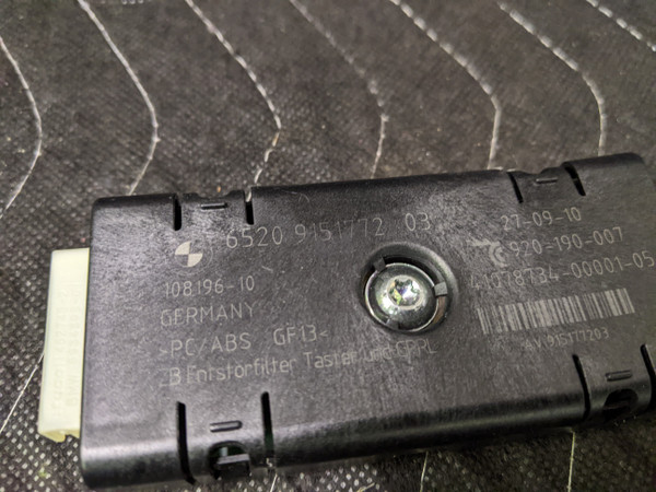 BMW F07 5-Series GT Antenna Suppression Filter 65209151772. Item shows wear from use such as scratches and scuffs. Part may not fit all variations of chassis listed. Use part number to determine fitment. Working when removed. Removed from parts vehicle. Please see photos for more detail. Free shipping to the lower 48 United States. Returned items are subject to a 20% restocking fee for any non-defective items.