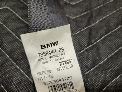 BMW F25/F26 X3 X4 Rear Right Upper Seat Belt Schwarz 72117266552. Item shows wear from use such as scratches and scuffs. Part may not fit all variations of chassis listed. Use part number to determine fitment. Working when removed. Removed from parts vehicle. Please see photos for more detail. Free shipping to the lower 48 United States. Returned items are subject to a 20% restocking fee for any non-defective items.