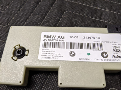 BMW F30 3-Series Diversity Antenna Amplifier 65209231177. Item shows wear from use such as scratches and scuffs. Part may not fit all variations of chassis listed. Use part number to determine fitment. Working when removed. Removed from parts vehicle. Please see photos for more detail. Free shipping to the lower 48 United States. Returned items are subject to a 20% restocking fee for any non-defective items.