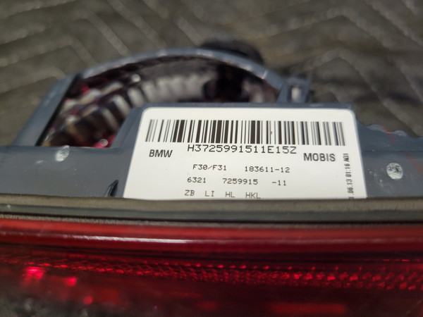 BMW F30 3-Series Rear Inner Tail Light Left 63217259915. Item shows wear from use such as light scratches on the lens and bug inside the housing. Part may not fit all variations of chassis listed. Use part number to determine fitment. Working when removed. Removed from parts vehicle. Please see photos for more detail. Free shipping to the lower 48 United States. Returned items are subject to a 20% restocking fee for any non-defective items.