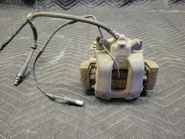 BMW F30/F31 3-Series Front Left Brake Caliper 34116850969. The donor vehicle was equipped with the M-sport package P337A=Yes. The pads and wear sensor are included but may need to be replaced. Item shows wear from use such as scratches and scuffs. Part may not fit all variations of chassis listed. Use part number to determine fitment. Working when removed. Removed from parts vehicle. Please see photos for more detail. Photos are stock photos and representative of the condition of the item. The item you receive may have variations in appearance compared to the photos shown. If you want to see the specific item you will receive, contact us before purchase.Free shipping to the lower 48 United States. Returned items are subject to a 20% restocking fee for any non-defective items.