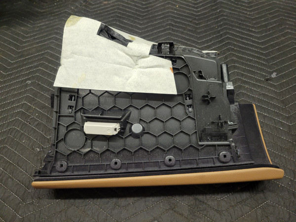 BMW F30/F31 3-Series Glovebox Saddle Brown Exclusive Seam 51169239346. The release handle finish is flaking off as shown in the photos. No key. Item shows wear from use such as scratches and scuffs. Part may not fit all variations of chassis listed. Use part number to determine fitment. Working when removed. Removed from parts vehicle. Please see photos for more detail. Free shipping to the lower 48 United States. Returned items are subject to a 20% restocking fee for any non-defective items.