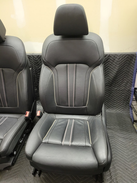 BMW G30 5-Series Front Comfort Seats Heated Dakota Leather Exclusive Seam Schwarz 52107457755. Item shows wear from use such as scratches and scuffs. Part may not fit all variations of chassis listed. Use part number to determine fitment. Working when removed. Removed from parts vehicle. Please see photos for more detail. Photos are stock photos and representative of the condition of the item. The item you receive may have variations in appearance compared to the photos shown. If you want to see the specific item you will receive, contact us before purchase. Returned items are subject to a 20% restocking fee for any non-defective items.